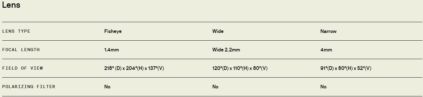 Fisheye 204°(가로) x 137°(세로) x 218°(깊이)